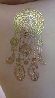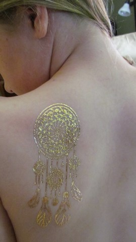 You'll find a total of six temporary tattoo paper sheets with a mix of large and small metallic tattoo designs. The temporary tattoos include silver and gold styles with an eye-catching glitter finish.